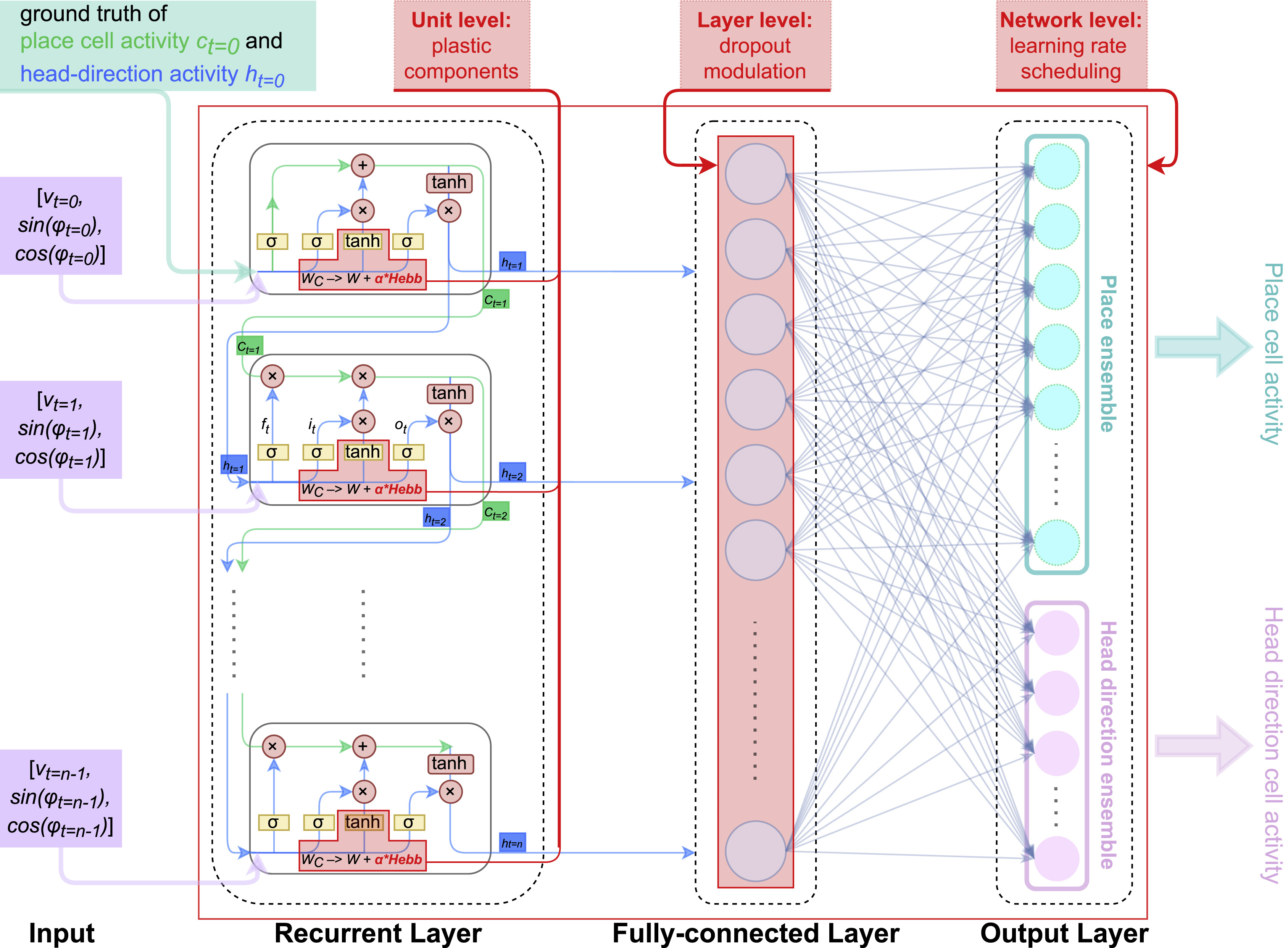 This process is implemented through selective plasticity, using a distillation loss applied